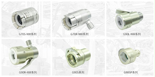 采用侧面流体接口并集成安全锁结构,增强操作安全性,适合侧面连接不受限的场合。标准型号不多,以定制为主。G70S/G70S-P系列
